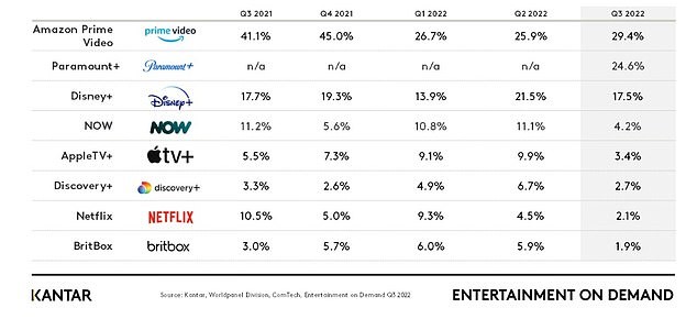 This was less than Prime Video (29.4 per cent), Paramount+ (24.6 per cent), Disney+ (17.5 per cent), Apple TV (3.4 per cent) and more.