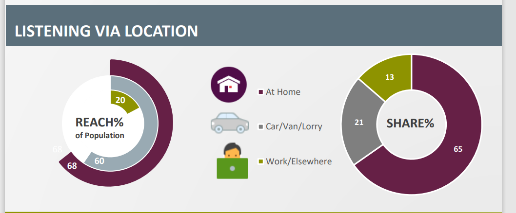 - 49.7 UK million adults tuned in to radio each week in the first three months of this year, the highest figure ever recorded! Overall listening reach has increased by 222,000 from 88.9% to 89.3%.
