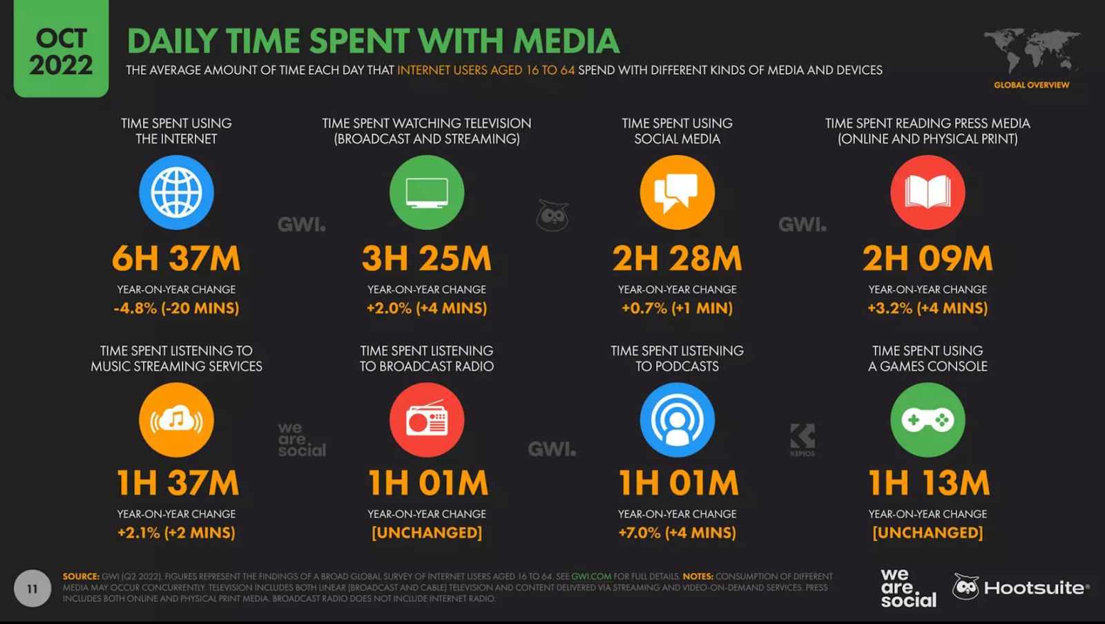 On average, internet users around the world spend 2 hours 9 mins a day on this type of content, slightly less than social media (2 hours 28 mins)