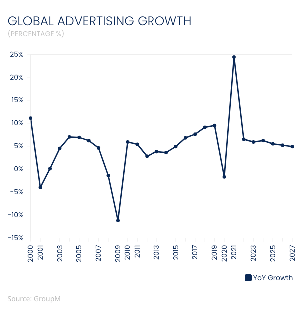 Global advertising is expected to increase by 5.9% in 2023, according to the latest forecast from Group M.