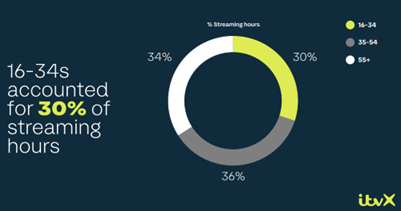 There are approximately 8-9 million Gen Zs using ITVX per month, making up 13% of all active users on ITVX since Q1 2022 are aged 16-24, accounting for 30% of total streaming hours.