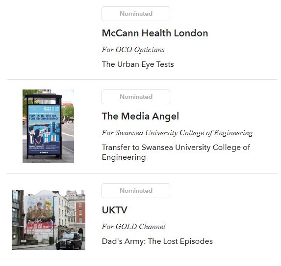 Link to nominations; https://www.thedrumoutofhomeawards.com/the-drum-out-of-home-awards/the-drum-out-of-home-awards-2019#100921