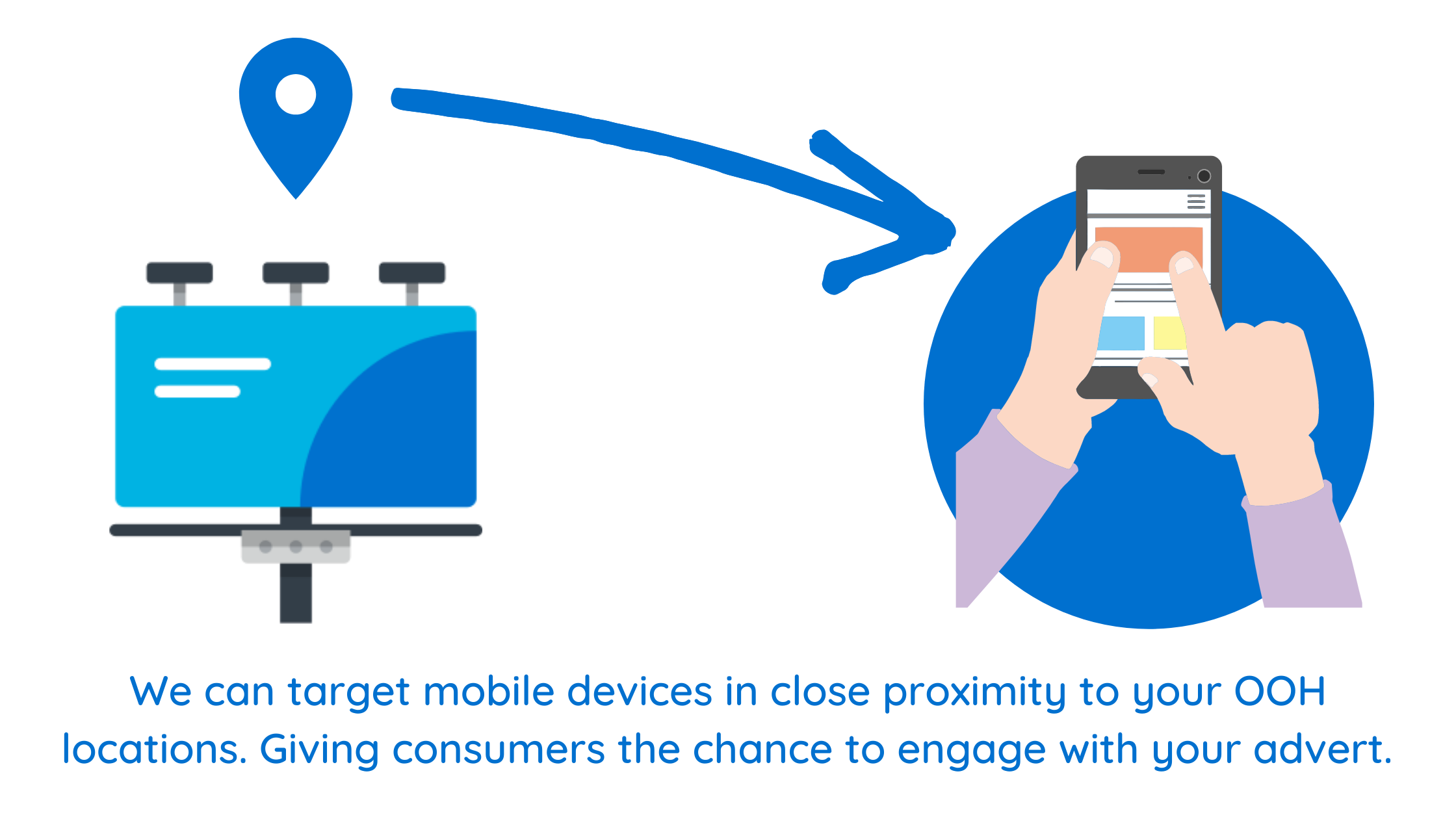 A challenge of OOH advertising is the lack of engagement with the viewer, they can’t click the advert, or visit a webpage seamlessly for more details. However, we can target the mobile devices of consumers who are near you OOH locations, doubling up the message and giving them a way to directly engage.
