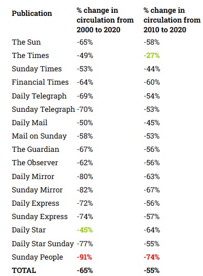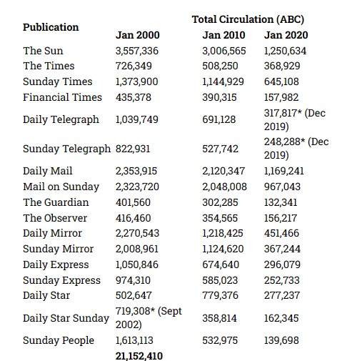 Local and regional newspapers have also seen a decline in circulation over the past decade, here are the latest circulation figures.